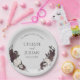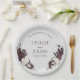 These Gothic Light Gray Floral Skull Wedding Paper Plates feature hand-drawn skulls in black ink with intricate cross-hatching details, adorned with rich burgundy and mauve florals, all against an elegant light gray background. Personalize with a heading at the top, bride and groom names and date. Perfect for gothic weddings, Halloween weddings, dark romantic themes, brown weddings, and alternative bridal celebrations.