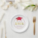 CLASSE de graduação personalizada elegante de placas de papel de festa de formatura de 2025 com boné de formatura vermelho metálico e ouro falsos e com o seu texto personalizado (mostrado com NOME do PARABÉNS) a vermelho. ASSISTÊNCIA: Para obter ajuda com a modificação ou personalização do design, alteração de cor, redimensionamento, transferência do design para outro produto ou, se você quiser coordenar itens, entre em contato com o designer ANTES DE ENCOMENDAR através da guia MENSAGEM de bate-papo Zazzle ou envie um email para makeitaboutyoustore@gmail.com.
