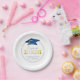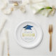 Pratos de papel personalizados elegantes para festa de formatura da TURMA DE 2026, apresentando um faux capa de formatura em azul e dourado e o ano com o seu texto personalizado (mostrado com PARABÉNS NOME) em azul. ASSISTÊNCIA: Para obter ajuda com modificação de design ou personalização, alteração de cor, redimensionamento, transferência do design para outro produto ou se você gostaria de itens coordenados, entre em contato com o designer ANTES DE COMPRAR através da guia de MENSAGEM do Zazzle Chat ou envie um e-mail para makeitaboutyoustore@gmail.com.