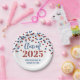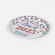 Classe de festa de formatura personalizável de 2025 pratos em um padrão de confete vermelho e azul glamouroso e texto elegante com letra manual.