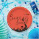 PARABÉNS Preto com o ano de graduação e a silhueta de multidão formando num fundo laranja. A cor do texto e do plano de fundo pode ser alterada.