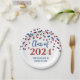 Classe de festa de formatura personalizável de 2024 placas em padrão de confete vermelho branco e azul e texto elegante com letra manual.