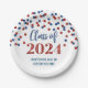 Prato De Papel Graduação de Confetti Azul Vermelho 2024