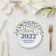 Classe de festa de formatura personalizável de placas de 2022 em um padrão glamouroso de ouro e confete azul e elegante texto de estilo manuscrito.