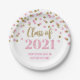 Prato De Papel Graduação de Confetti Dourada Rosa 2021