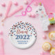 Classe de festa de formatura personalizável de placas de 2022 em branco com padrão de confete vermelho e azul glamouroso. e texto elegante com letra de estilo.