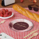 Prato De Papel Graduação Dourada Marble Agate com Borgonha Rosa