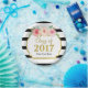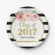 A classe customizável da festa de formatura de 2017 placas no teste padrão preto e branco clássico das listras, vintage cor-de-rosa da aguarela floresce, e detalhes do ouro.