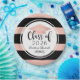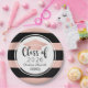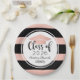As placas de papel de graduação personalizadas apresentam o ano de classe e o nome do formando em um roteiro de caligrafia na moda e elegante em preto com boné dourado / cor-de-rosa-pincel e fundo com padrão de listras em negrito. Rolar design de sotaque.