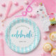 "Celebrar." Tenha orgulho, alegria e mostre este marco do seu formando favorito! Celebrar com este espantoso, moderno, cintilante ponto turquesa e roteiro de tipografia contra um fundo azul-turquesa e listrado branco, placa de papel para um evento a lembrar. Personalize o texto personalizado com o nome e o ano de classe do seu formando. Sua escolha de 2 tamanhos: 7" ou 9". Garantido para adicionar na moda diversão ao seu partido especial! Convites de convivência, guardanapos e outras vestimentas de graduação também estão disponíveis nessa moda e coleção especial. Basta digitar o nome do seu formando e o ano de classe e você pode personalizar facilmente esta placa de papel. Por favor, me mande mensagens com quaisquer perguntas ou solicitações.