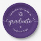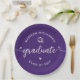 Orgulhe-se, alegre-se e mostre esse marco do seu graduado favorito! Celebre com esses pratos de papel personalizados simples, modernos e ousados. Fonte de caligrafia manuscrita branca divertida com corações fofos e um ícone de boina de graduação sobre um fundo roxo. Personalize o texto com o nome do seu graduado e o ano de formatura ou mensagem especial. Disponíveis em 2 tamanhos: 7” ou 9”, redondos ou quadrados. Convites, cartões de agradecimento, leques, faixas, placas de jardim e outros itens para formatura também estão disponíveis nessa coleção moderna e divertida. Garantido para adicionar diversão estilosa à festa especial deles!