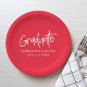 Adicione um toque especial à sua festa de formatura com placas de papel de graduação personalizadas! As placas de papel exibem "Formando" em um script branco manuscrito com um fundo vermelho ou cor de sua escolha. Personalize as placas de graduação adicionando o nome do formando e o ano de graduação.