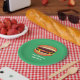 Prato De Papel Gráfico de Cheeseburger em verde - Adicionar palav