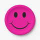 Prato De Papel Gráfico de rosto feliz | Rosa-Neão