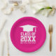 Classe personalizada de placas de papel de festa de formatura. Crie o seu para 2025, etc. Fornecimentos personalizados para a parte do janto de CHURRASCO do formando do segundo grau. Material descartável de janto de diversão impresso para estudantes com diploma. Forte qualidade adequada para homens, mulheres e crianças. Texto personalizado, ano e cor de fundo personalizável é azul e branco. Adicione o nome personalizado dos colegas de equipe, nome da equipe da escola, citação engraçada, slogan ou monograma. Design inclui chapéu/boné de graduação. Também é bom para festas de reunião. Neon Pink. Pequeno e grande tamanho.