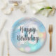 Placas de papel personalizadas com luzes pastel bokeh, nuvens e miçangas de festas com grande número de aniversário editável e "Parabéns" em letra de script. Disponível em vários tamanhos. Consulte a coleção para itens correspondentes.