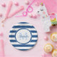 Placas de papel clássicas na moda grandes das listras azuis e brancas. Personalize este teste padrão legal adicionando a inicial conhecida e monogrammed da menina da hora. Este design gráfico do monograma é parte da coleção clássica da cor do verão dos fundamentos do partido das listras azuis.