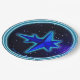Uma imagem fractal 3D simples, de tom azul, parecida com uma espaçonave estilizada sobreposta a um fundo estrelado. Os anéis concentrados (ondas gravitacionais?) emanam da espaçonave para o aparente vazio do espaço. Uma aura azul clara envolve a espaçonave, talvez o resultado seja mais rápido que o viagem da luz. Adicione seu próprio texto.