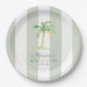Green Cabana Stripes Palm Beach Club Birthday Paper Plates