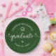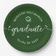 Be proud, rejoice and showcase this milestone of your favorite grad! Celebrate with these simple, modern, bold custom paper plates. Fun white handwritten calligraphy script with cute, playful hearts and a graduation cap icon overlay a hunter green background. Personalize the custom text with your graduate’s name and class year or special message. Available in 2 sizes: 7” or 9”, round or square. Matching invites, thank you cards, hand fans, banners, yard signs and other graduation goodies are also available in this trendy and playful collection. Guaranteed to add stylish fun to their special party!