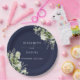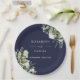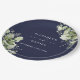 Elegante prato de papel de marinho azul floral floral personalizado com seus nomes e data de casamento especial. Projetado por Thisnotme©