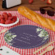 Placa de papel de casamento roxo e verde floral elegante personalizada com seus nomes e data de casamento especial. Projetado por Thisnotme©