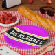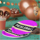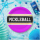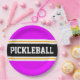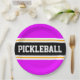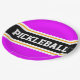 Este design desportivo apresenta texto ousado PICKLEBALL dentro a uma faixa horizontal de corridas a preto, realçada com pinstripes brancas duplas flutuantes contra listras externas cor-de-rosa brilhantes. O texto pode ser personalizado.