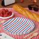 Um padrão de listras em vermelho patriótico, branco e azul.
