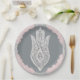 Grey and pink patterns is a beautiful design that shows pink lace design on a grey background. They are the perfect paper plates to impress your guests.