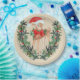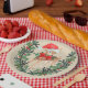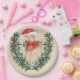 O design festivo de férias apresenta grinalda caprichosa de fawn e azevinho em fundo bege.
