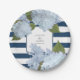 Prato De Papel Grinalda floral do Hydrangea listrado azul pintado