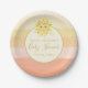 Chapas de papel de chá de fraldas de sol, personalizadas e bonitas. O design apresenta uma ilustração pintada à mão de um sol sorridente vestindo uma coroa floral e um fundo listrado de arco-íris de cor boho com tons de rosa e amarelo. O texto pode ser personalizado de acordo com as suas necessidades (clique em "Personalizar" para editar e "Personalizar mais" para fazer alterações mais avançadas). As placas de papel perfeitas para um chá de fraldas ensolarado de verão. Confrontar convites à luz do sol, decorações de chás de fraldas e novos presentes para bebês podem ser encontrados em lojas.
