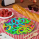 Prato De Papel Groovy Peace assina o padrão Rainbow