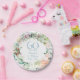 Com uma delicada guirlanda floral em aquarela, estes pratos de papel botânicos elegantes para o 60º / 75º aniversário de casamento podem ser personalizados com as informações do seu aniversário de diamante ou platina em texto azul diamante elegante. Desenhado por Thisisnotme©