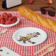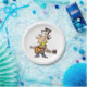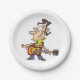 Um homem parecendo uma estrela-de-foguete com violão e vestindo roupas de estrela-de-foguete. Este design parece realmente eficaz nestas placas de papel