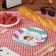 Sacudir, Tumble e Play! A ginástica festa de aniversário placas em rosa, roxo e turquesa.