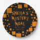 Prato De Papel Halloween Black Orange Squares Name Spooky Comida