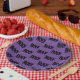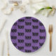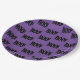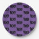 Placa de papel de festa de Halloween mostrada em preto e roxo com um impressão BOO!. Personalize esta placa ou comprar como está.