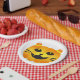 Jack-o-Lanterna humorístico curvado como um gato com orelhas únicas feitas de milho doce de barriga gelada. Um presente excelente de Halloween para amantes de gatos.