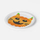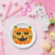 Jack-o-Lanterna humorístico curvado como um gato com orelhas únicas feitas de milho doce de barriga gelada. Um presente excelente de Halloween para amantes de gatos.