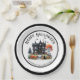 Sirva suas guloseimas de Halloween em estilo com estas pratos de papel divertidos e festivos, perfeito para uma festa anual de fantasias de Halloween ou qualquer celebração assustadora. Apresentando um simples design preto e branco, essas placas exibem uma casa assombrada com sotaques laranja de uma árvore assustadora, abóboras e jack-o-lanternas. Acentos de fantasma e morcego adoráveis completam a aparência, junto com uma mistura de tipografia simples e de script. Estes pratos são uma adição divertida e assustadora à decoração da sua festa. Bonita mancha assombrada Casa de Halloween Papéis de Vintage Elegante Ghosts Bats Pumpkins
