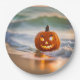 Prato De Papel Halloween Jack-O-Lanterna Na Praia