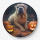 Prato De Papel Halloween Shar Pei Com Pumpkins Assustado