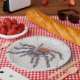 Chapas de papel divertidas do Dia das Bruxas, com uma aranha gigantesca e legal caneta e ilustração a tinta. Feliz Dia das Bruxas!