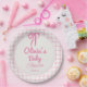 Prato De Papel Hand Drawn Pink Gingham Bow Baby Girl Shower