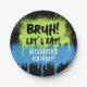 A teen boys "Bruh" themed birthday paper plate using cool typography. A custom kids teenage boys birthday paper plate design perfect for any teens birthday party theme. Customize this "Bruh" birthday paper plate with your own text and make it your own!