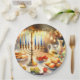 Ilustração de aquarela de Hanukkah. Uma mesa bem arrumada para uma comemoração festiva, com uma menorah tradicional com velas iluminadas. Luz suave e quente, enquanto decorações de férias adicionam um toque de alegria. Luzes quentes criando uma atmosfera acolhedora e convidativa.