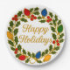 Prato De Papel Happy Holidays Wreath Christmas Lights and Holly