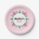 Happy Mother's day paper plates decorated with pink tulips, white tiny flowers and green leaves.