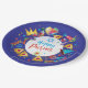 Happy Purim - Paper Plate. Translation from Hebrew: Happy Purim! Purim Jewish Holiday poster with stars of David, traditional Hamantaschen cookies, gragger toy - noisemaker, balloons, musicians, masks, Purim basket on festive confetti background. Wish a great Purim celebration. Carnival, Masquerade, Festival, Kids Party, Israel. Crafts & Party Supplies > Party Supplies > Tableware > Paper & Party Plates